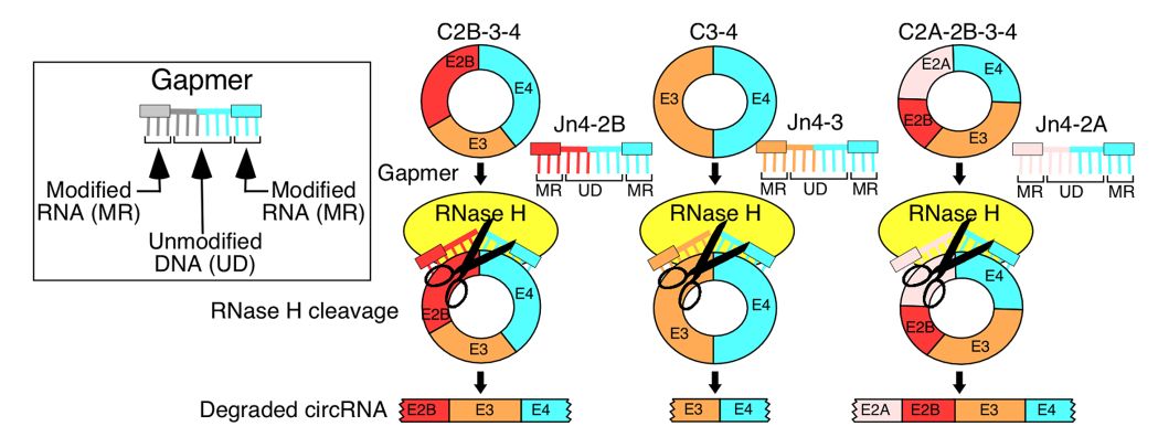 针对环状RNA连接位点设计Gapmer,设计方案如下: